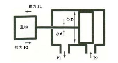 從上面公式可以看出,由于油缸在作推動和拉動時受壓面積不同,故所產生的力也是不同,即: